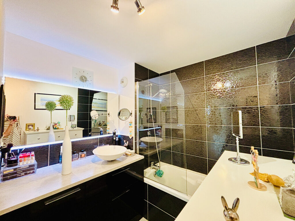 Il se compose d’une entrée avec WC, d’une cuisine ouverte sur le séjour/salon, de 2 chambres et d’une salle de bains.