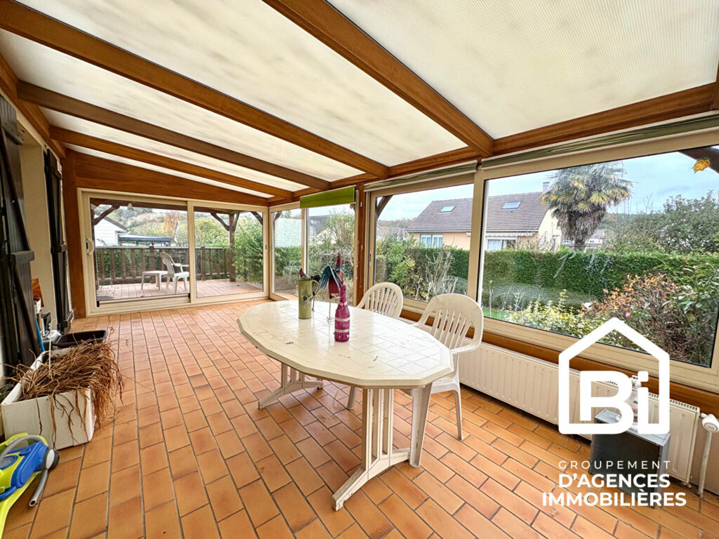 Un séjour lumineux exposé plein sud prolongé par une véranda donne sur le jardin et offre un espace convivial et baigné de lumière.